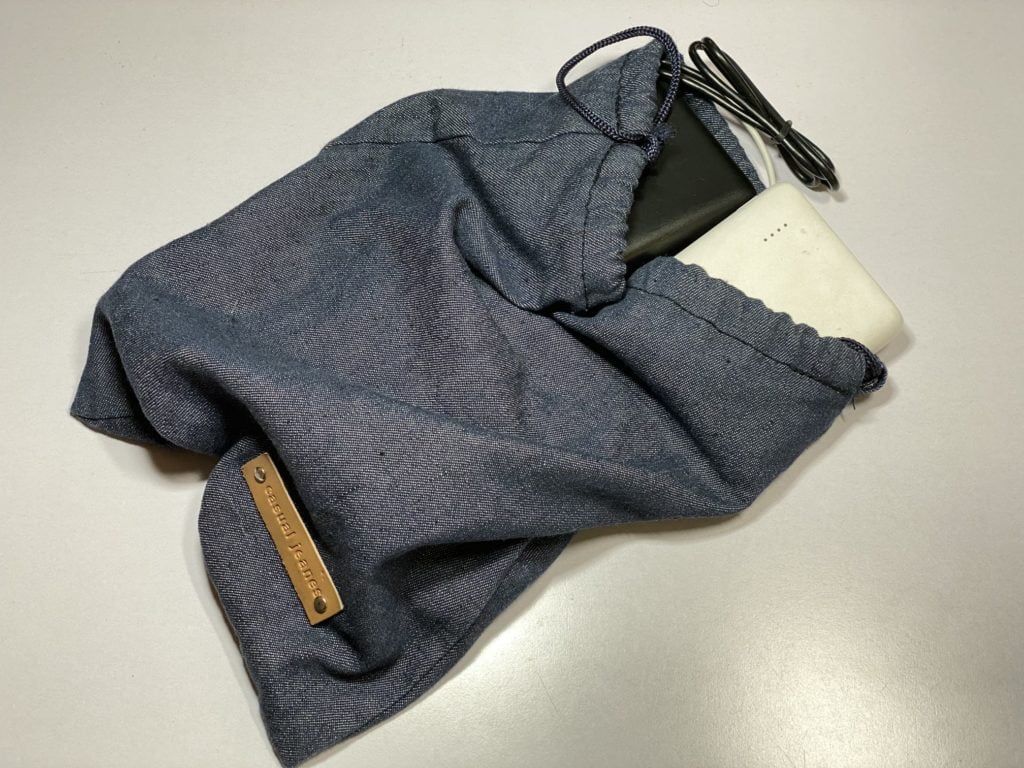 ▼今まではガジェット類を100均で買った巾着袋へ無造作に入れて外へ持ち出していました。