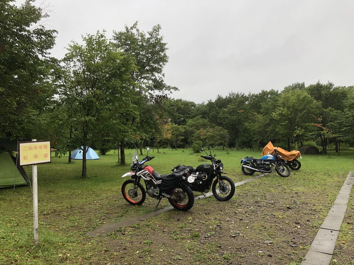 ライダー向けサイト(550円)はバイクの駐車位置を考えると、テント設置場所の自由度はそれほど高くありません。