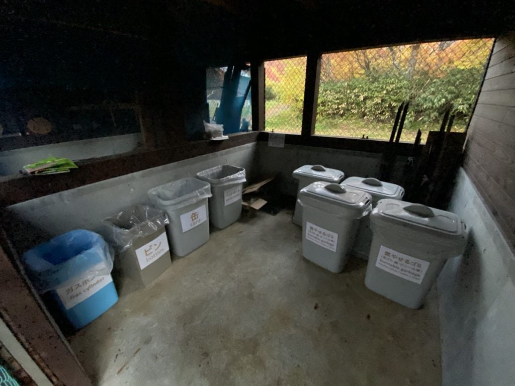 ▼ゴミステーションは管理棟の裏にあり。無料で捨てられます。