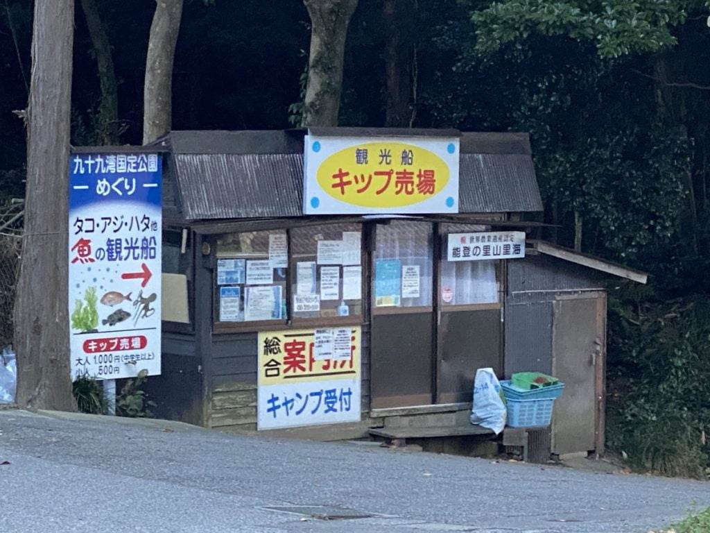 ▼観光船の切符売り場がキャンプ場受付を兼ねています。