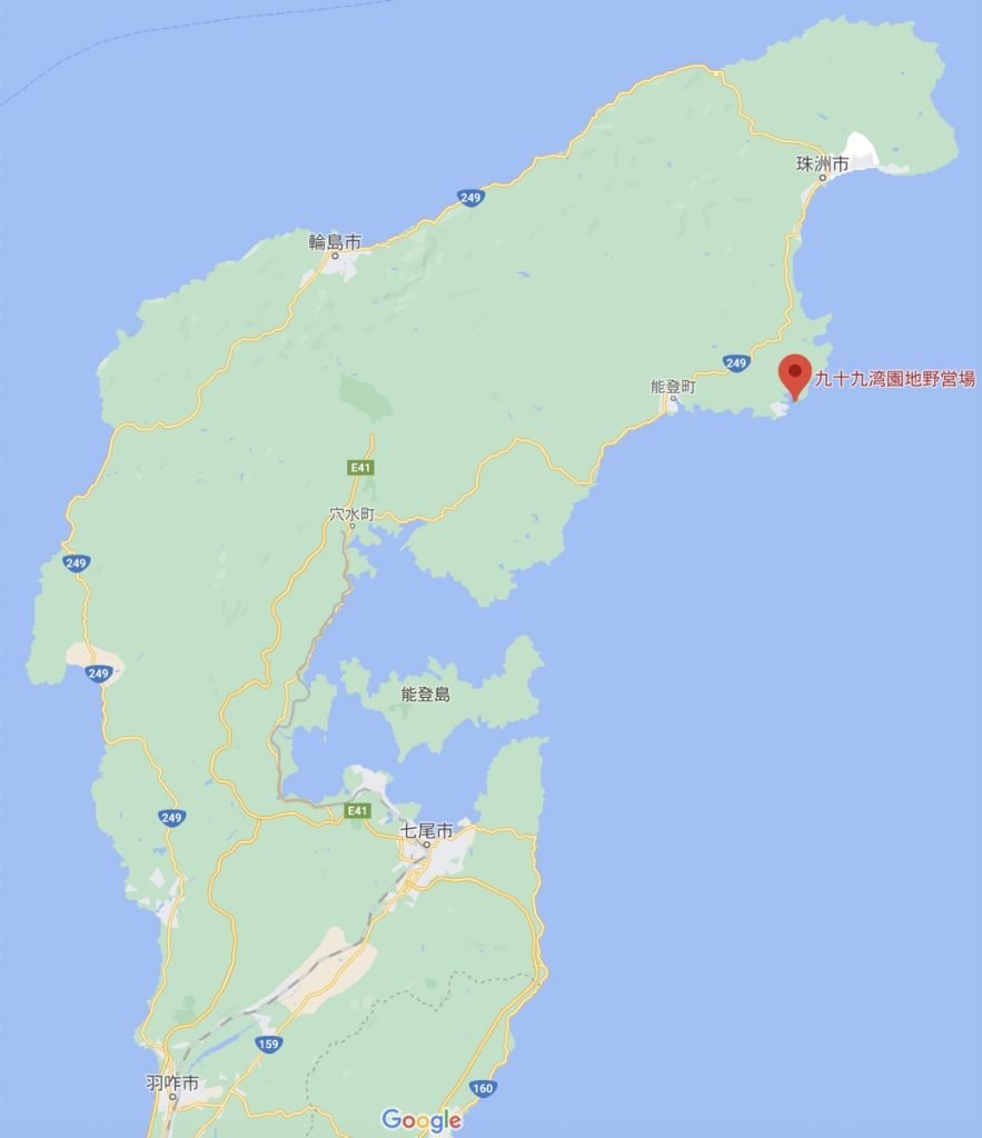 ▼今回は石川県能登半島の九十九湾(つくも湾)野営場です。