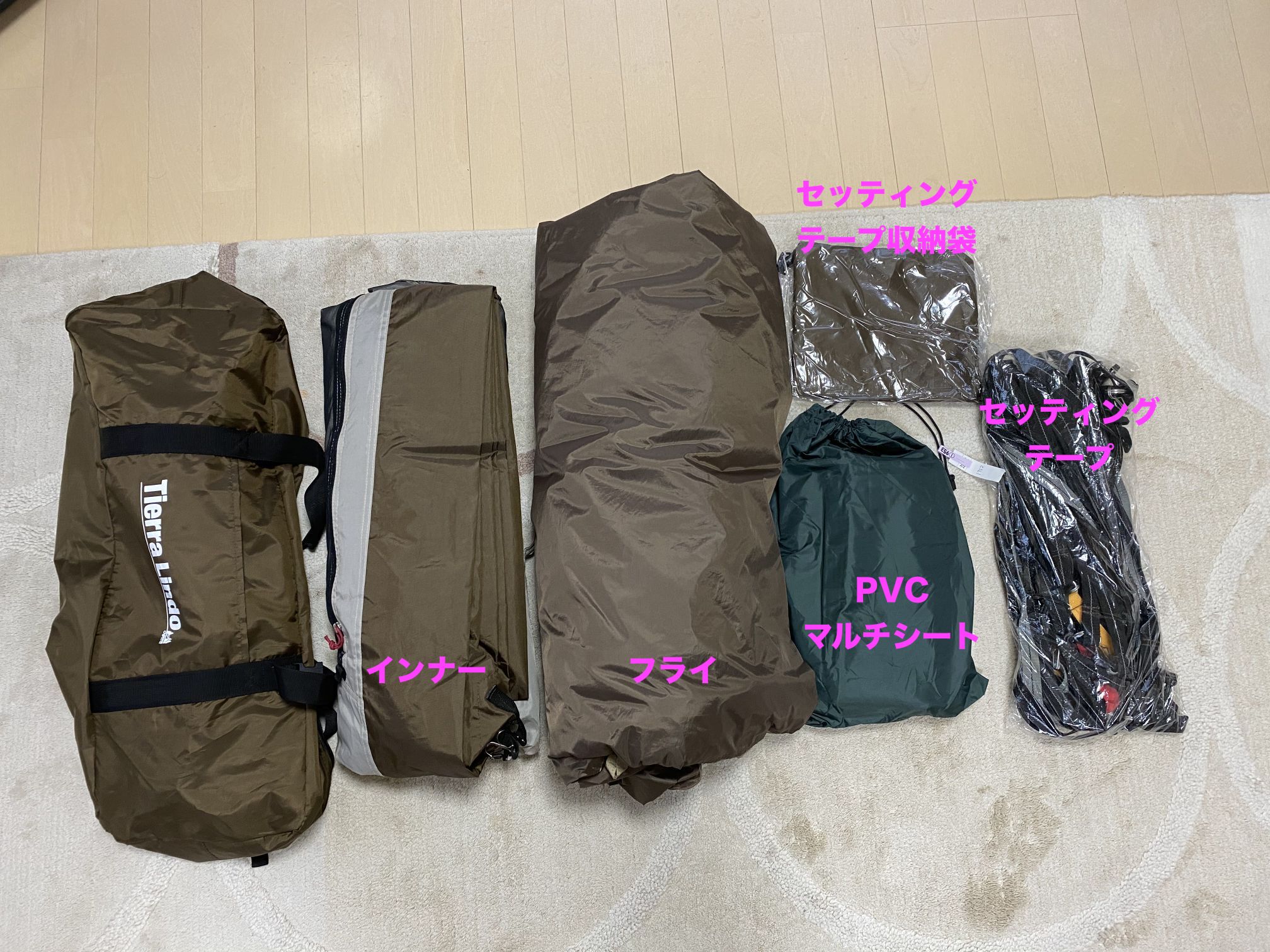 ちなみにテント、インナーの他、グラウンドシート(PVCマルチシート)や各種収納袋まで取り扱ってくれます。