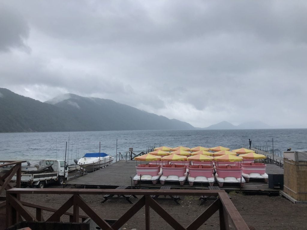支笏湖の湖畔を沿う国道453号線と国道276号線は、眺めの良い道路と情報を得ていたので楽しみにしていたのですが、雨でほとんど視界が得られず…。