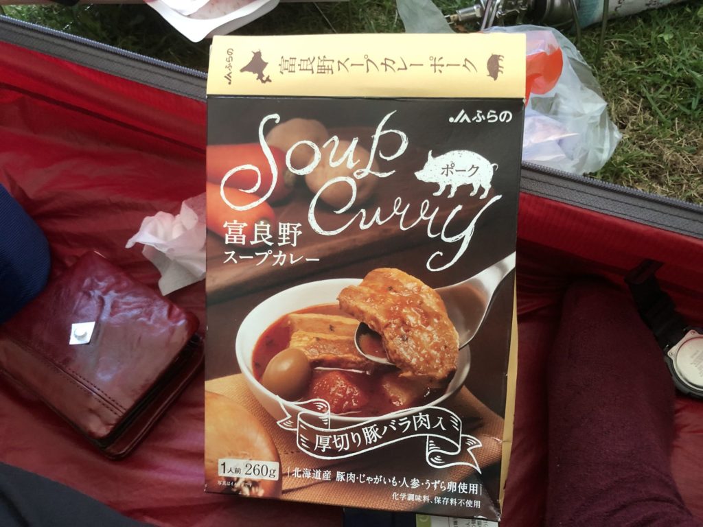 買いだめしておいた富良野スープカレー、野菜スティック、バナナを食しました。