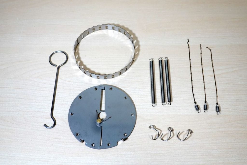- ヒーターをバーナーに固定する為のバネ棒が2種、計6本