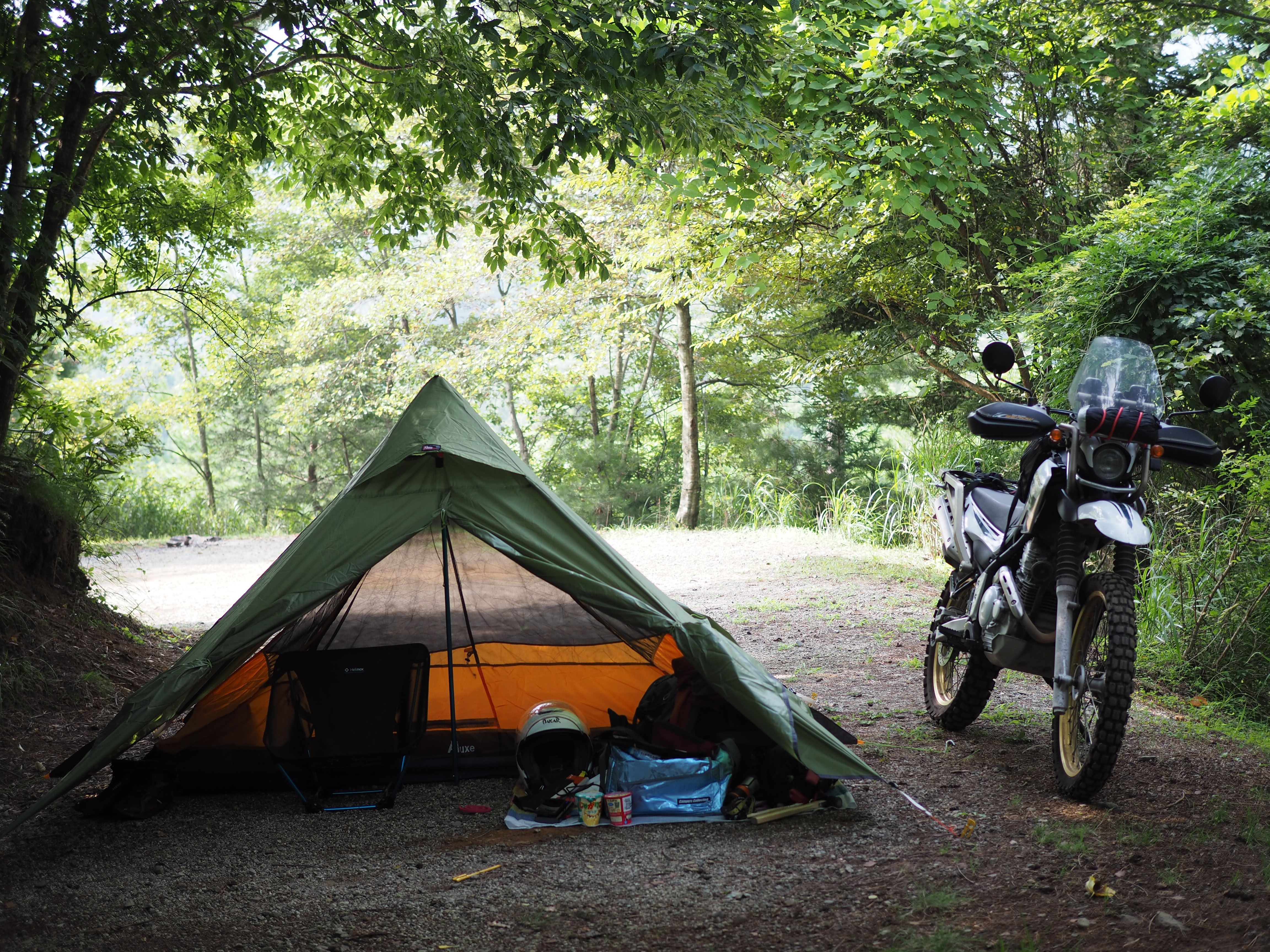 疲れ果てるまで走りまくって、日が落ちる直前にキャンプ場に到着し、ささっと設営して一杯飲んで寝るってのが理想です。
